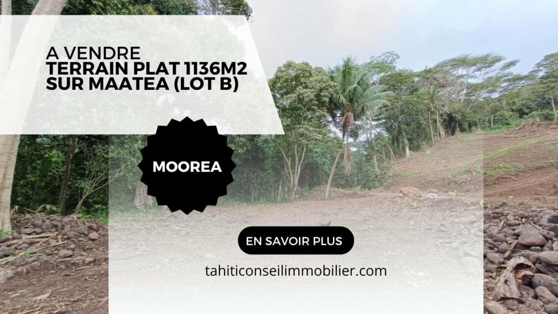 Terrain plat de 1136m2 à vendre sur Maatea, Moorea. Lot B