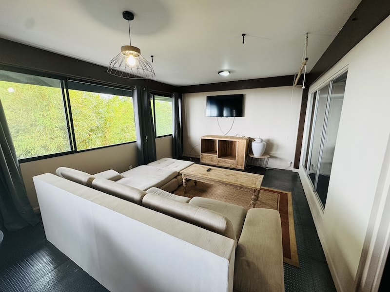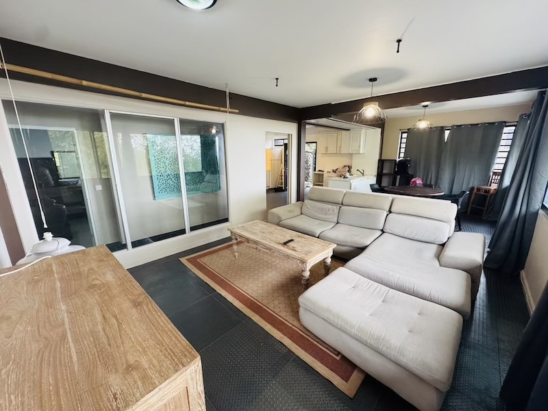 appartement F3 de 100m2 comprenant 2 chambres dont 1 climatisée, 1 salle d’eau avec wc, 1 wc indépendant, buanderie, cuisine aménagée et équipée, salon séjour, jardinet privatif avec vue mer et 1 place de parking couverte.