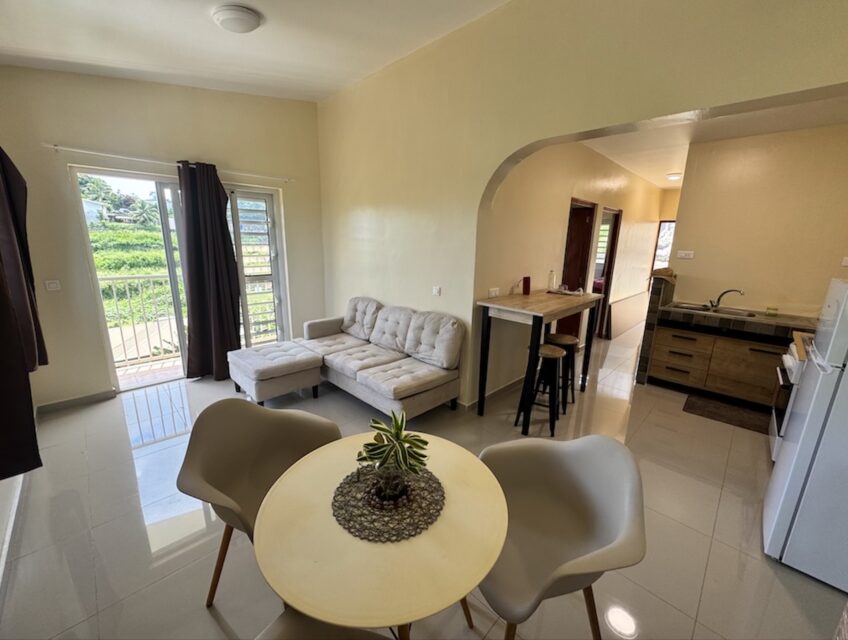 FAA’A – Piafau Hills – Séduisant 3 pièces refait à neuf, il est composé d’une entrée, un salon avec cuisine ouverte équipée et aménagée, 2 chambres, une salle d’eau, un w.c séparé, une cour privative, et 2 places de parking non couvertes.