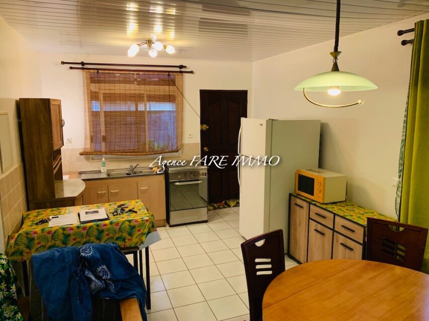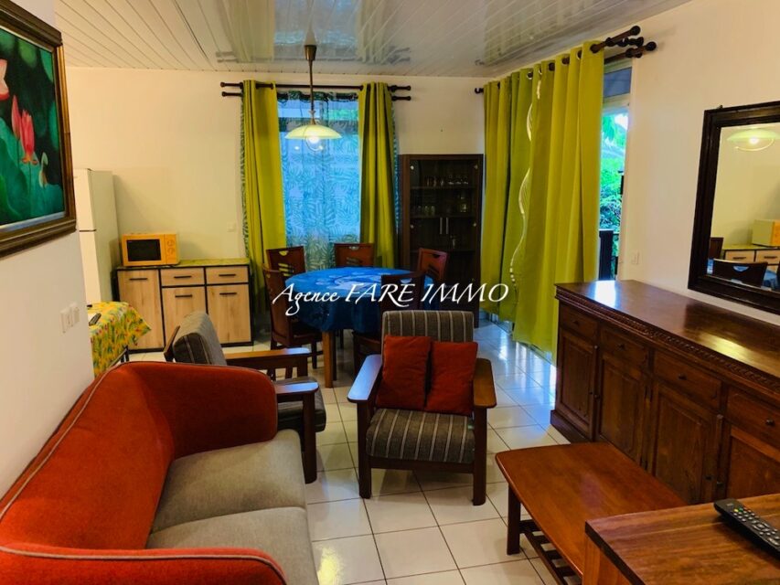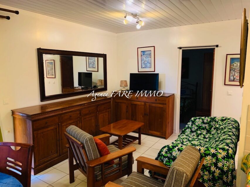 maison F3 entièrement meublée et équipée avec 2 chambres dont 1 climatisée, terrasse couverte d’env 8m2, garage couvert et abri de jardin. Le tout sur un terrain clos avec portail.