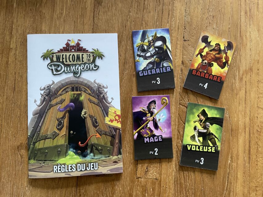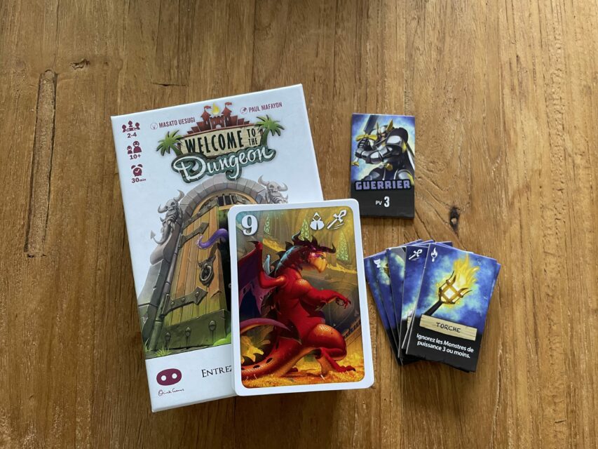 Dans « Welcome to the Dungeon », vous incarnez des aventuriers à l’entrée d’un donjon périlleux. Avec un seul héros et son équipement de six items pour tous, chaque joueur tente de prouver qu’il est le plus courageux (ou le plus insensé) pour plonger dans les abysses. À chaque tour, choisissez entre renforcer le donjon avec de nouveaux monstres ou affaiblir l’héros en écartant un équipement.