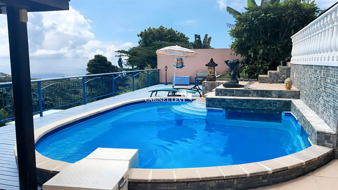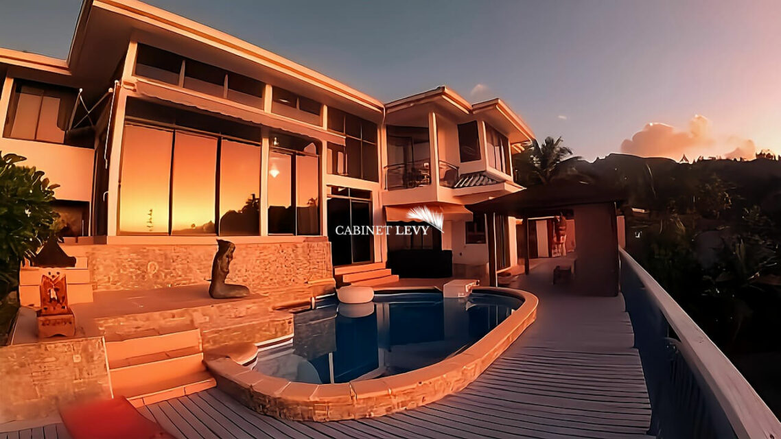 Belle villa d’architecte F7 de 299 m2 vue mer avec annexes extérieur et piscine à Mahina