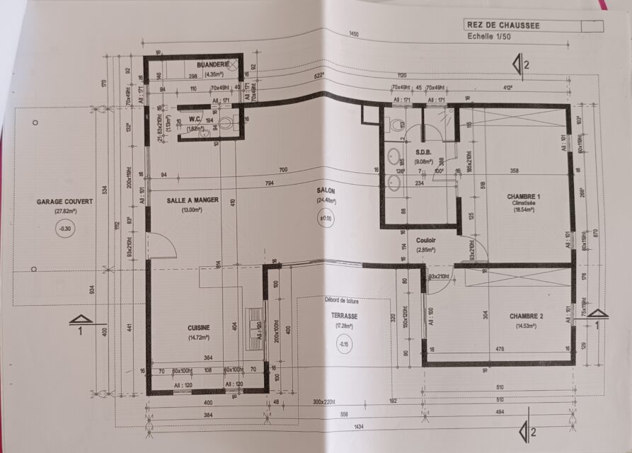 Maison d’une surface d’environ 120 m2 habitable et d’une terrasse de 20 m2 donnant sur une piscine de 42m3 (3,5m x 6,5m x 1,85m).