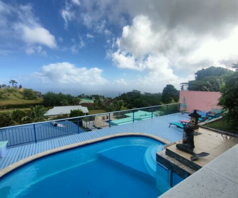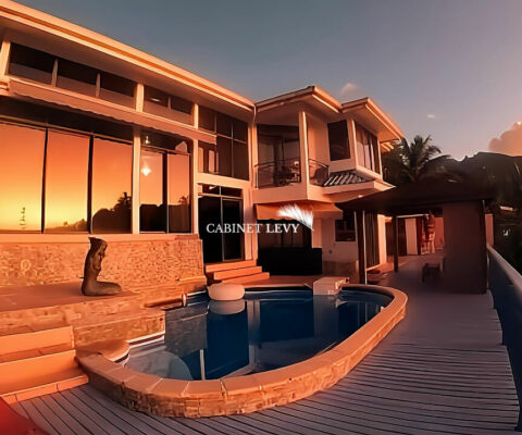 Belle villa d’architecte F7 de 299 m2 vue mer avec annexes extรฉrieur et piscine ร Mahina