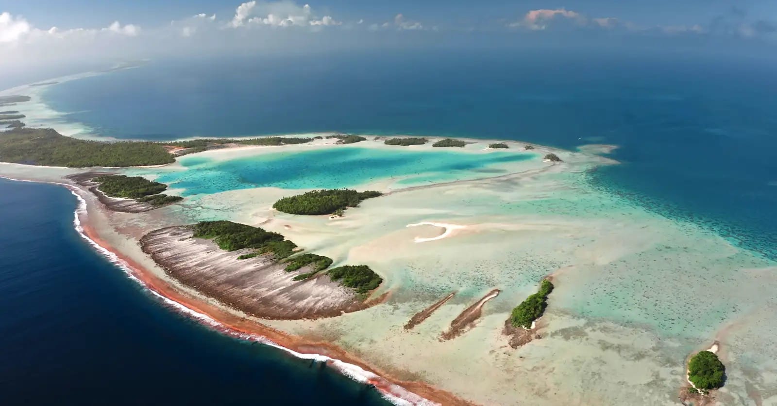 Fakarava, classé réserve de biosphère par l’UNESCO, offre une atmosphère radicalement différente, plus sauvage et immaculée. L’atoll se distingue par ses deux passes éloignées l’une de l’autre : Garuae au Nord (la plus large passe de Polynésie) et Tumakohua au Sud.