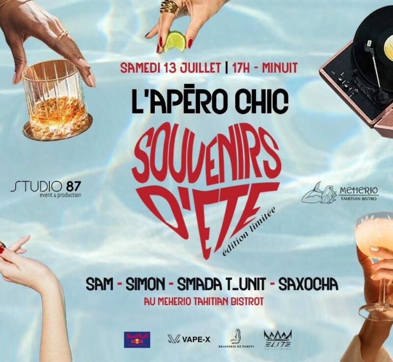On vous donne rendez-vous au Meherio Tahitian Bistrot dès 17h pour profiter des dernières lueurs du soleil aux côtés de SAM, SIMON, SMADA, T-UNIT et SAXOCHA.