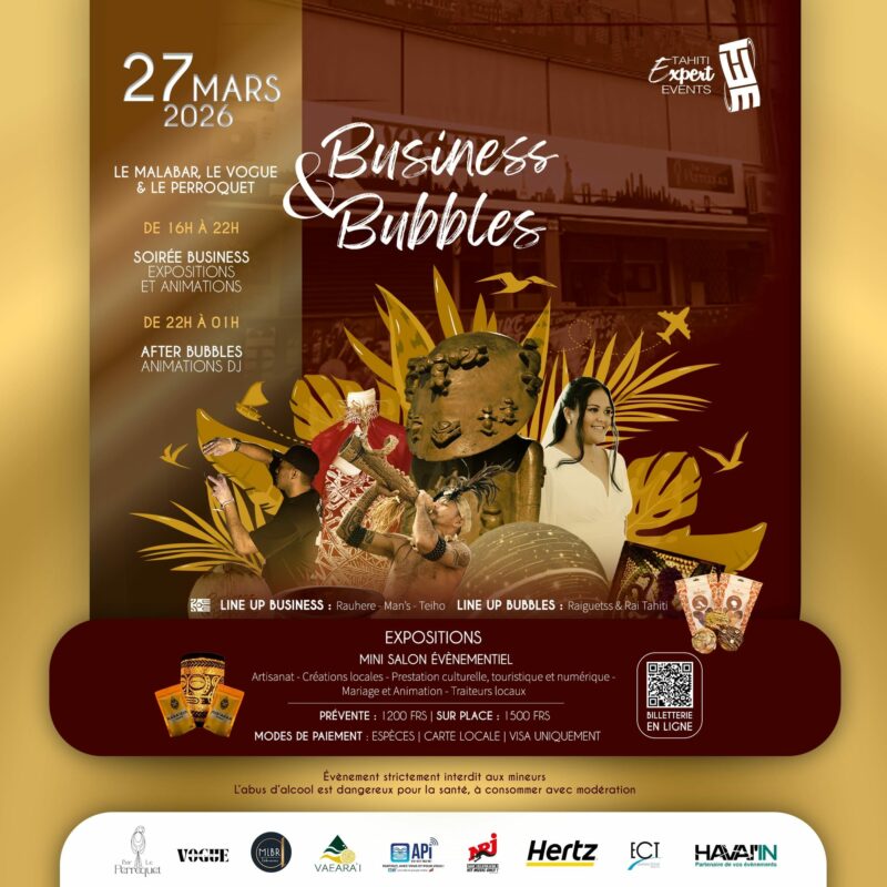Vous cherchez à élargir votre réseau professionnel tout en passant une excellente soirée en Polynésie française ? Ne manquez pas la deuxième édition de l’événement Business & Bubbles. Le vendredi 27 mars 2026, rendez-vous au Malabar, au Vogue et au Perroquet pour un concept unique alliant rencontres professionnelles et ambiance festive. Que vous soyez un entrepreneur local, un porteur de projet ou un visiteur curieux de découvrir le dynamisme polynésien, cette soirée est faite pour vous.