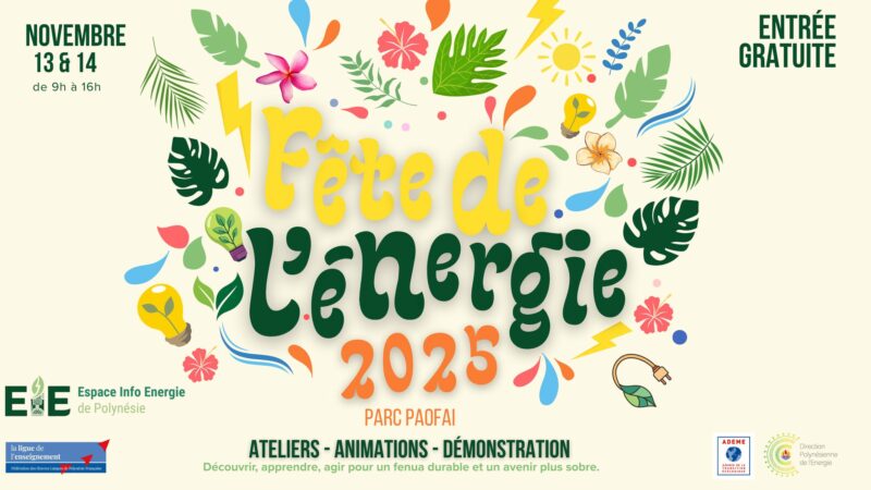 Les 13 et 14 novembre 2025, le Parc Paofai à Papeete accueillera une nouvelle édition de la Fête de l’Énergie, un événement grand public entièrement gratuit consacré à la maîtrise de l’énergie et aux solutions durables en Polynésie française.