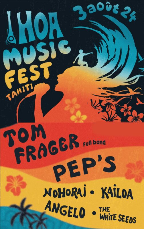 Tom Frager, chanteur et surfeur talentueux, fera vibrer le Parc Vaira’i avec son groupe au grand complet. Né à Dakar et ayant grandi en Guadeloupe, il mélange pop, rock, reggae et jazz manouche pour une musique unique. Connu pour son hit « Lady Melody », il revient à Tahiti après une performance remarquée à la Brasserie Hoa en janvier 2022.