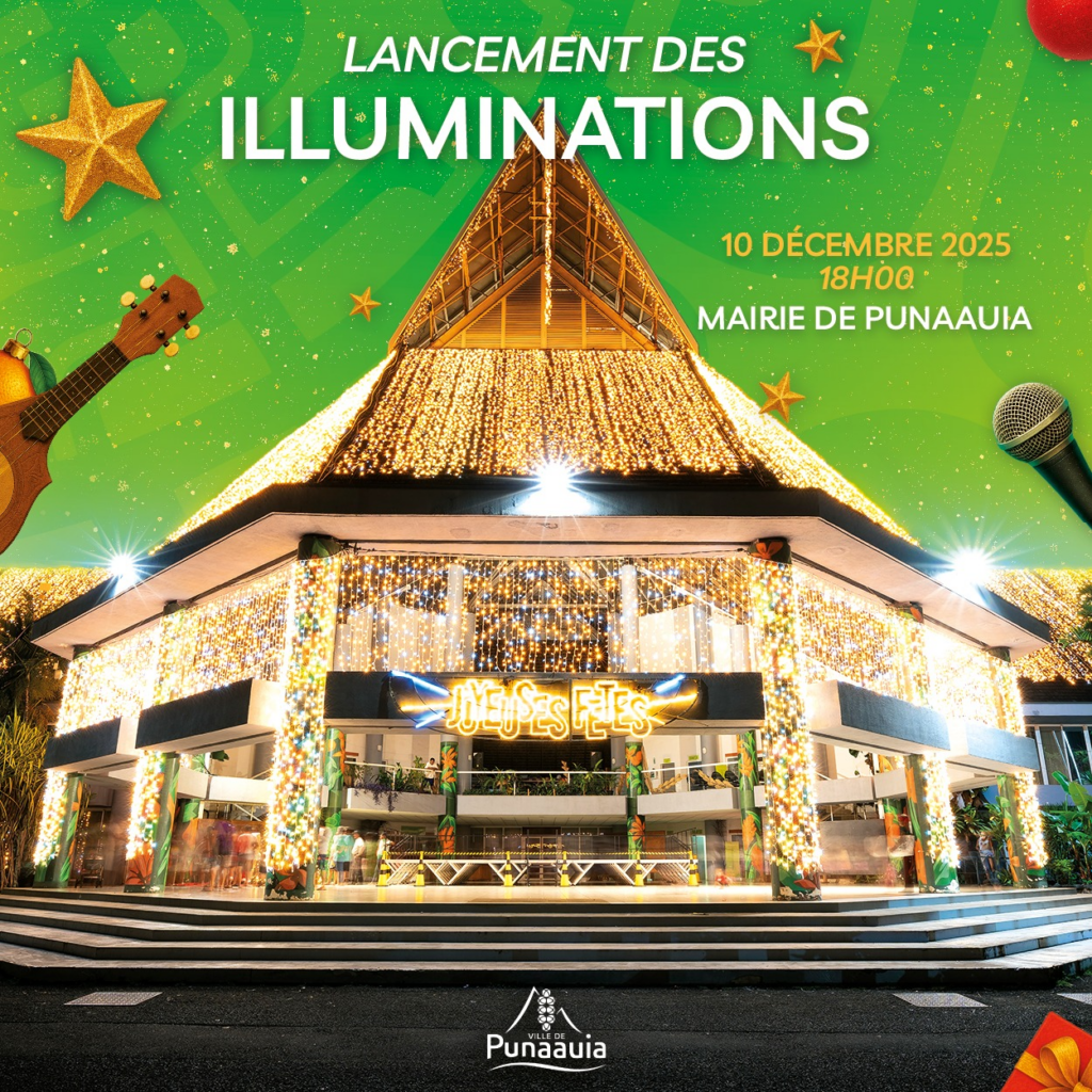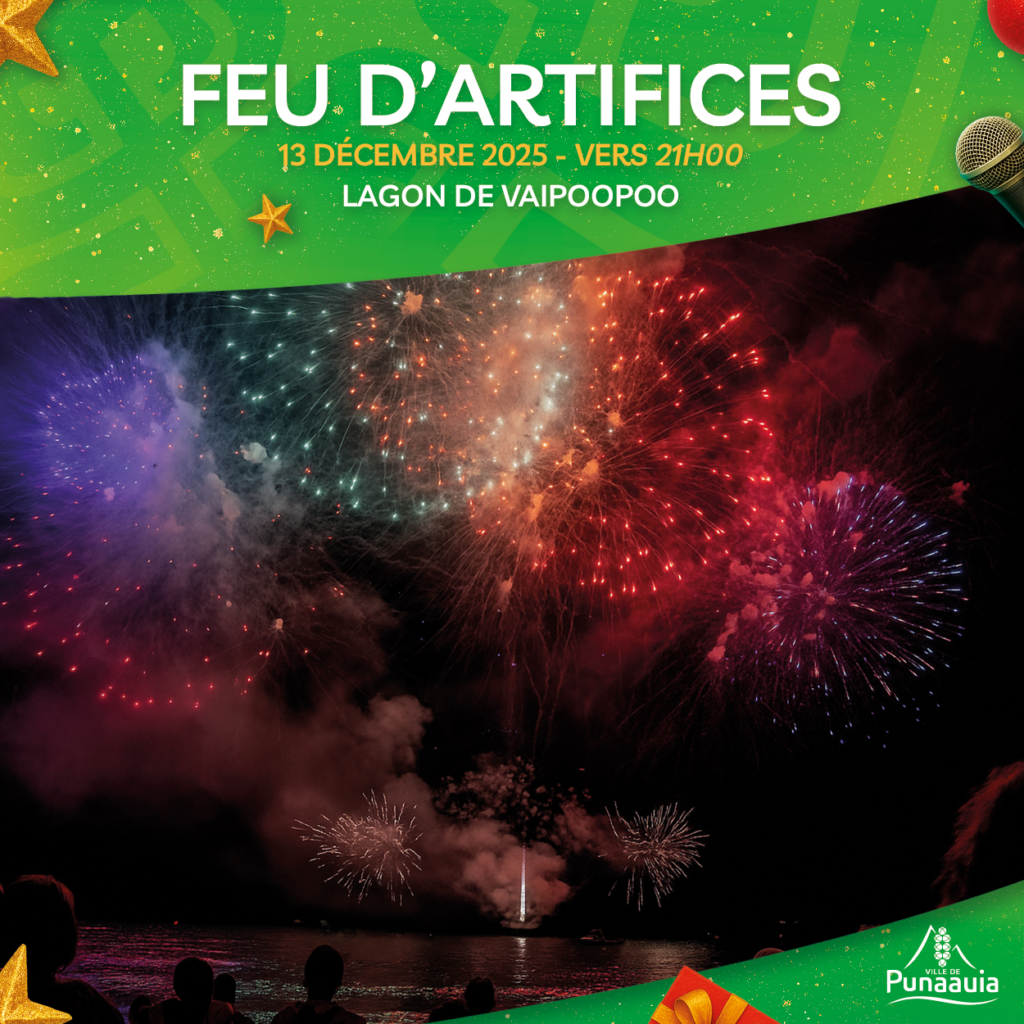 Du 10 au 13 décembre 2025, la commune de Punaauia vous donne rendez-vous pour quatre jours entièrement gratuits, placés sous le signe de la féerie, du partage et de la convivialité. Illuminations, concerts, spectacles, cinéma en plein air et feu d’artifice : un programme riche et festif qui émerveillera aussi bien les enfants que les adultes.