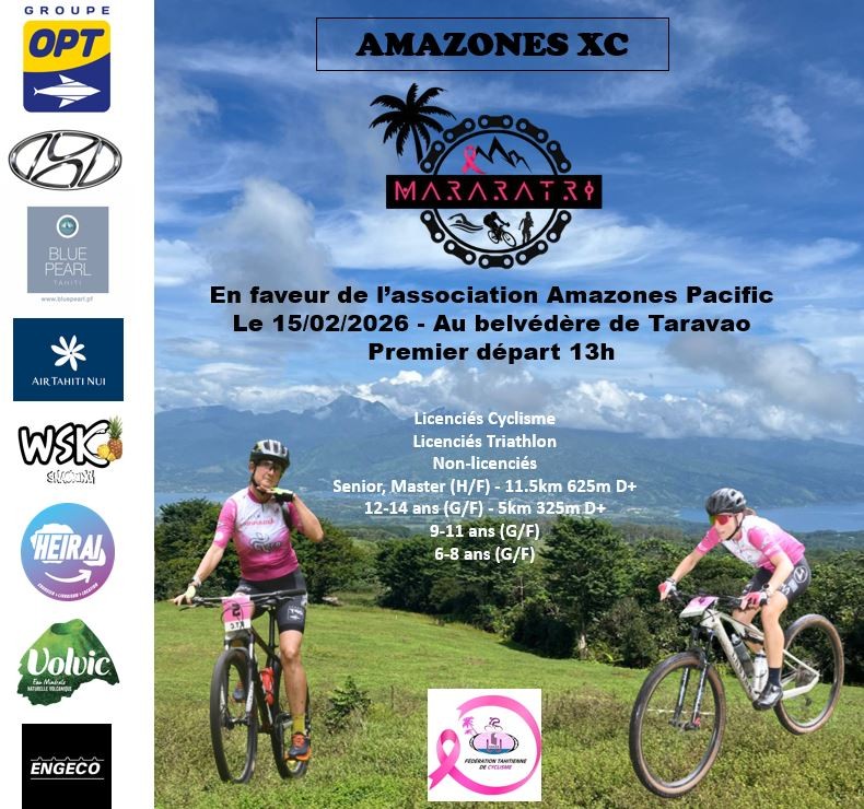 En parallèle, le club Mararatri, en collaboration avec la Fédération Tahitienne de Cyclisme, propose l’Amazones XC. Il s’agit d’une compétition de VTT (sans assistance électrique) ouverte à toutes les catégories d’âge, des enfants de 6 ans aux catégories seniors et masters.