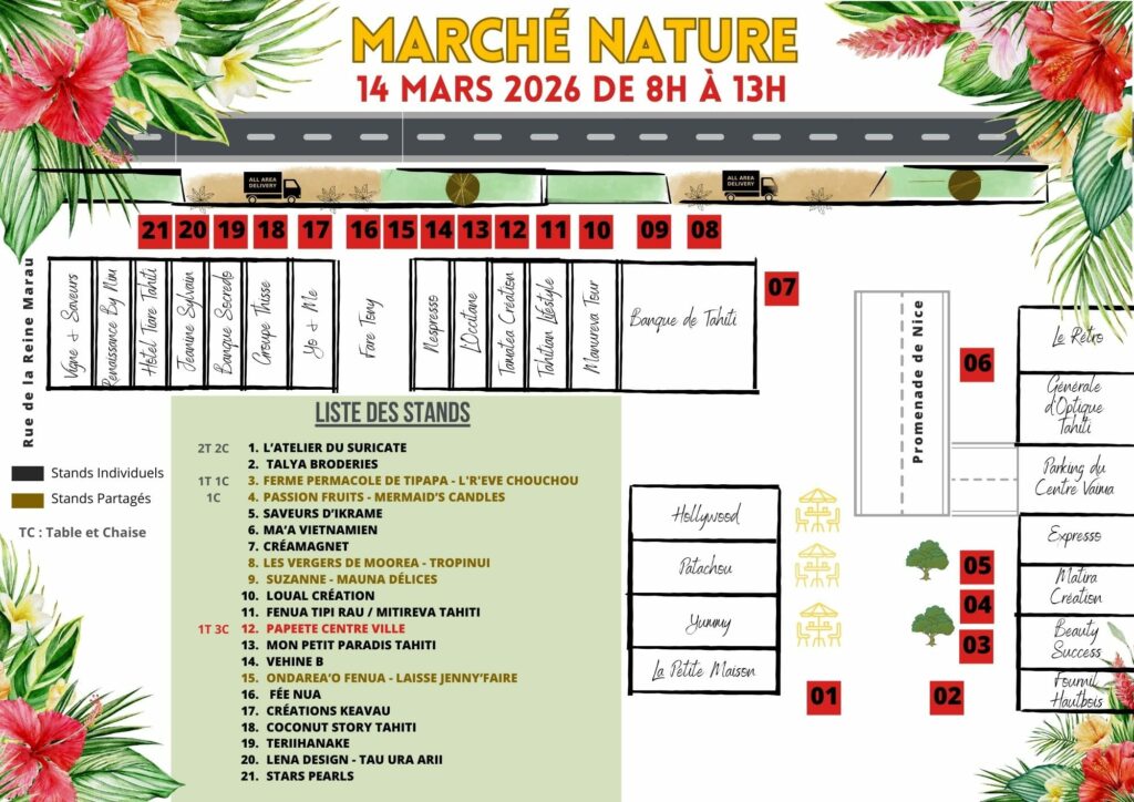 Organisé avec le soutien de la ville de Papeete, de la CCISM et de la Fédération Générale du Commerce (FGC), cet événement valorise ceux qui œuvrent au quotidien pour une consommation respectueuse de l’environnement polynésien. N’hésitez pas à venir faire le plein de bonnes choses et de sourires ce samedi matin !