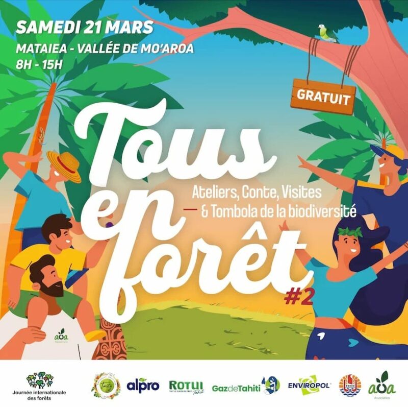 Que vous veniez en famille pour divertir vos enfants, entre amis ou par simple curiosité, l’événement Tous en forêt à Mo’aroa est une magnifique opportunité d’agir ensemble. Chaussez vos meilleures baskets, préparez votre esprit d’aventure et rejoignez l’association AOA à Mataiea pour faire vivre et protéger nos forêts polynésiennes.